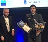 Direktør i Hovedredningssentralen Jarle Øversveen (tv) delte ut Haugesundkonferansens ærespris til redningsmann Ingvar Horgen fra 330-skvadronen. Foto: Sigbjørn Larsen.