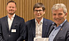 Fiskeri- og havminister Bjørnar Skjæran mottar rapporten med nøkkeltallene fra den norske maritime klyngen fra Ivar Engan (tv) og Even Aas fra Maritimt Forum. Foto: Sigbjørn Larsen.