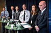 Havarikommisjonen i uholdbar dobbeltrolle, hevder DNVGLs advokat. Kommandørkaptein Kristian Haugnes i midten med hvit uniformskjorte. Foto: NTB/Scanpics.