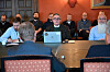 NSOFs forhandlingsleder Hans Sande overfor motparten Norges Rederiforbund da NOR-forhandlingene startet. Sammen med seg hadde Sande et forhandlingsutvalg bestående av sju tillitsvalgte i rederiene.Foto: HJ Gardar/NSOF