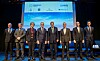 Fra venstre: Ole Erik Almlid, Sebjørn Dahl, driftsdirektør i Höegh Autoliners, Hilde Merete Aasheim, konsernsjef i Hydro, Statsminister Jonas Gahr Støre, John Kerry, USAs spesialutsending for klima, Svein Tore Holsether, konsernsjef i Yara, Kjetel Digre, konsernsjef i Aker Solutions, Rob van Riet, Interim Head, First Movers Coalition. Yara
