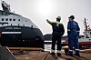 Representantar frå reiarlaget og skipsverftet var til stades på utdokkinga for å sjå når skipet kom glidande ut frå dokkhallen.