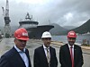 Fra venstre Forsvarsminister Frank Bakke-Jensen, styremedlem i Vard Roy Reite og verftsdirektør ved Vard Langsten Ronny Langset. Foto: Sigbjørn Larsen.